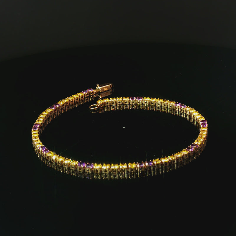 Perfect for both elegant evenings and refined everyday wear, this yellow diamond and amethyst tennis bracelet embodies timeless beauty and luxurious artistry.