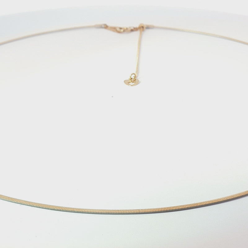 Crafted from high-quality solid 18k gold, this necklace features the signature smooth, flat omega structure that lays beautifully along the neckline—perfect for wearing alone as a minimalist statement or pairing with your favourite pendants for a personalised touch.