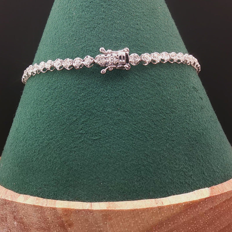 Crafted in solid 18k white gold, the bracelet offers a sleek, luminous finish that enhances the natural beauty of the diamonds. The triple secure clasp ensures a comfortable and reliable fit, making it perfect for everyday sophistication or special occasions.