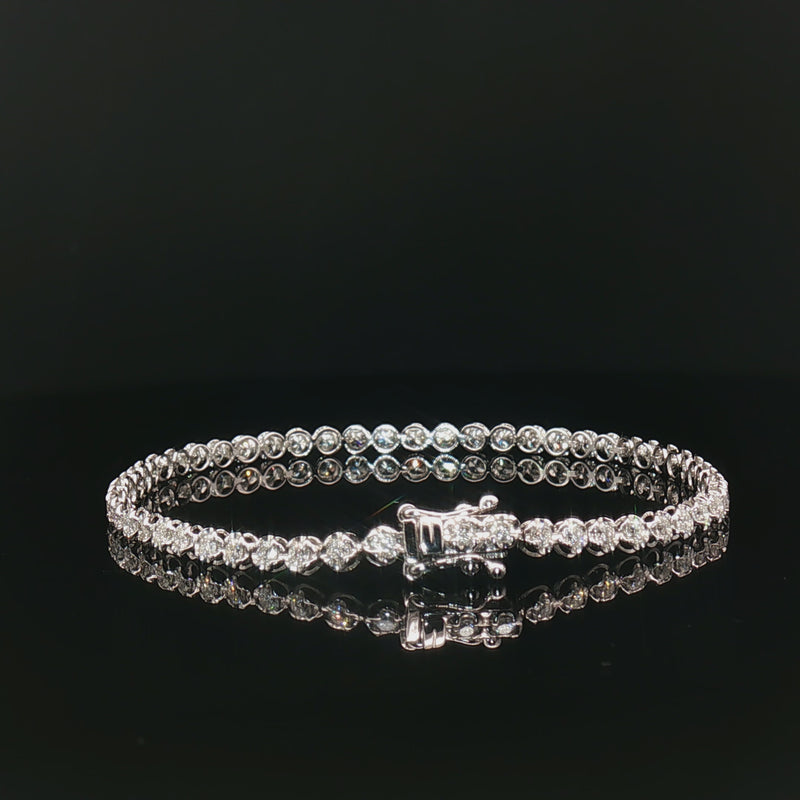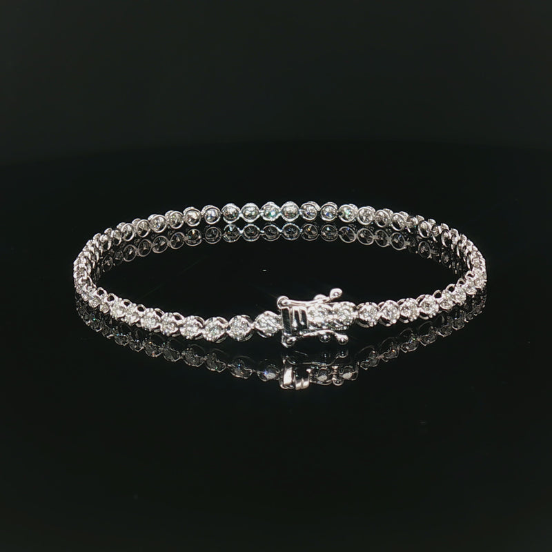 18k White Gold Diamond Tennis Bracelet – 2.00ct Natural Round Brilliant Diamonds, 17.5cm with Triple Secure Clasp