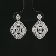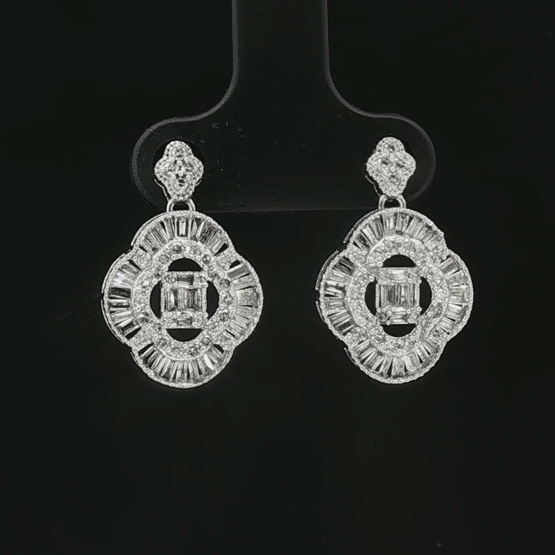 18k White Gold Clover Dangle Earrings – 1.00ct Natural Round & Baguette Diamond Design
