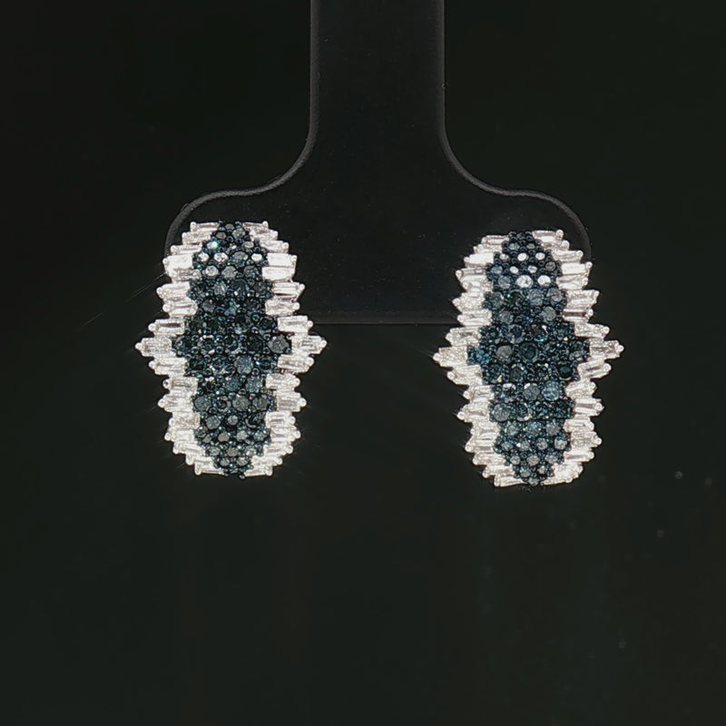 18k White Gold Half Loop Earrings – 1.00ct Fancy Blue & Natural Diamond Round and Baguette Cut