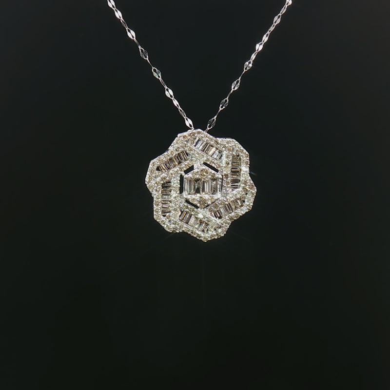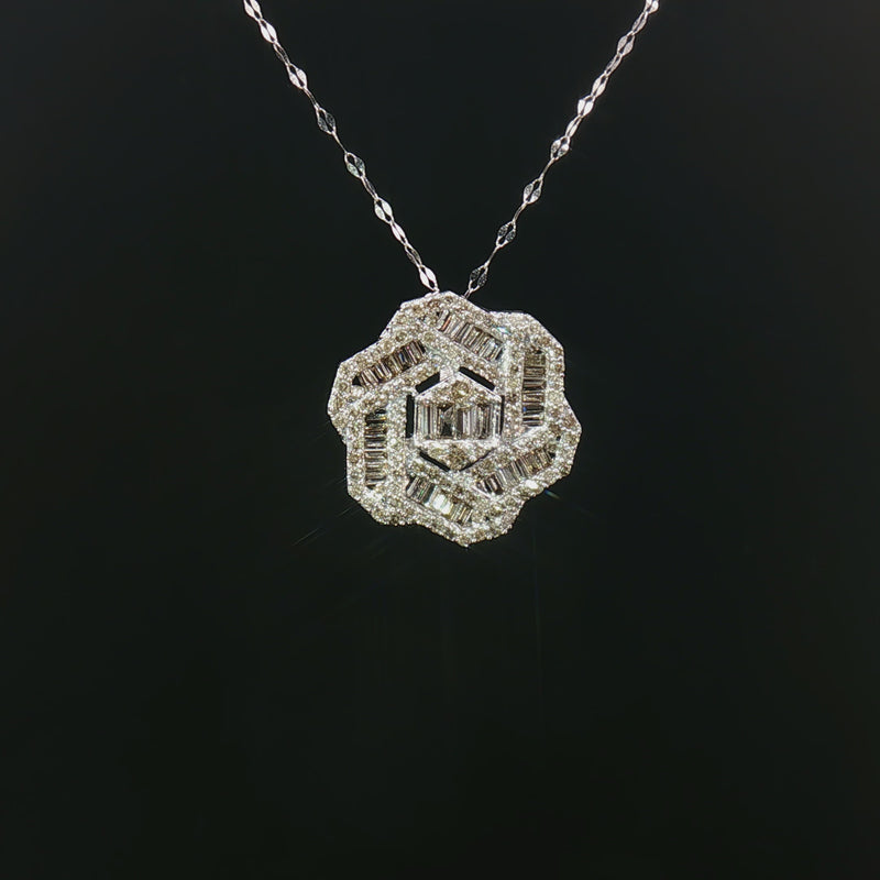 18k White Gold Hexagon Diamond Pendant – 1.00ct Natural Round & Baguette Brilliant Diamonds
