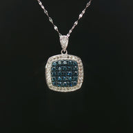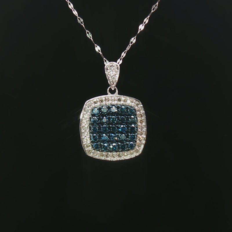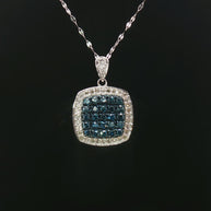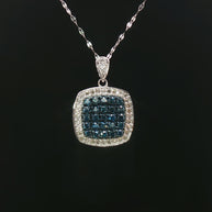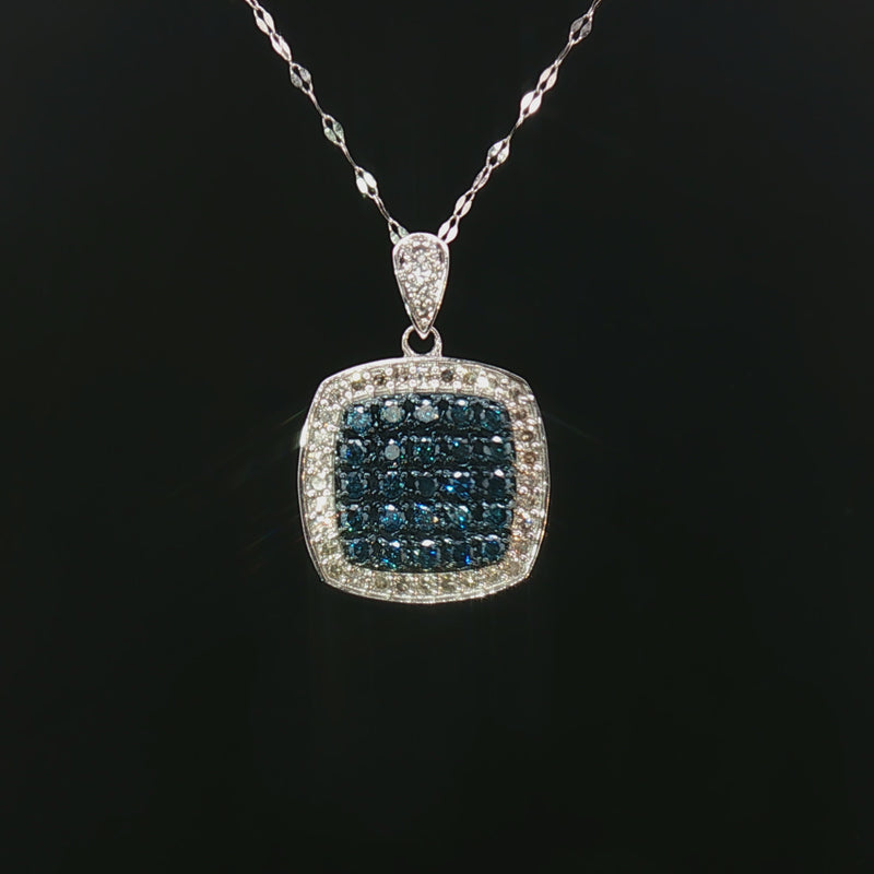 18k White Gold Square Pendant – 1.00ct Fancy Blue & White Natural Brilliant Diamond Halo