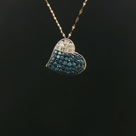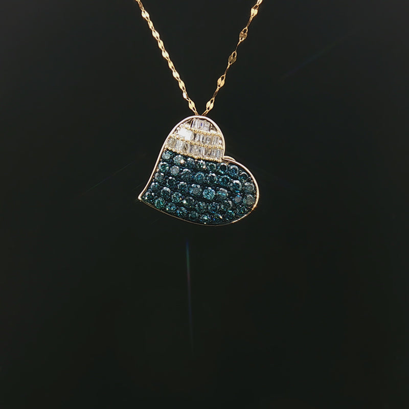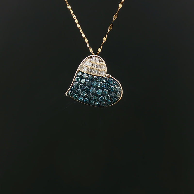 18k Yellow Gold Heart Pendant – 1.00ct Fancy Blue & Colourless Natural Round & Baguette Diamonds