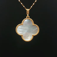 18k Yellow Gold Clover Pendant – 25mm Mother of Pearl with Elegant Beaded Frame
