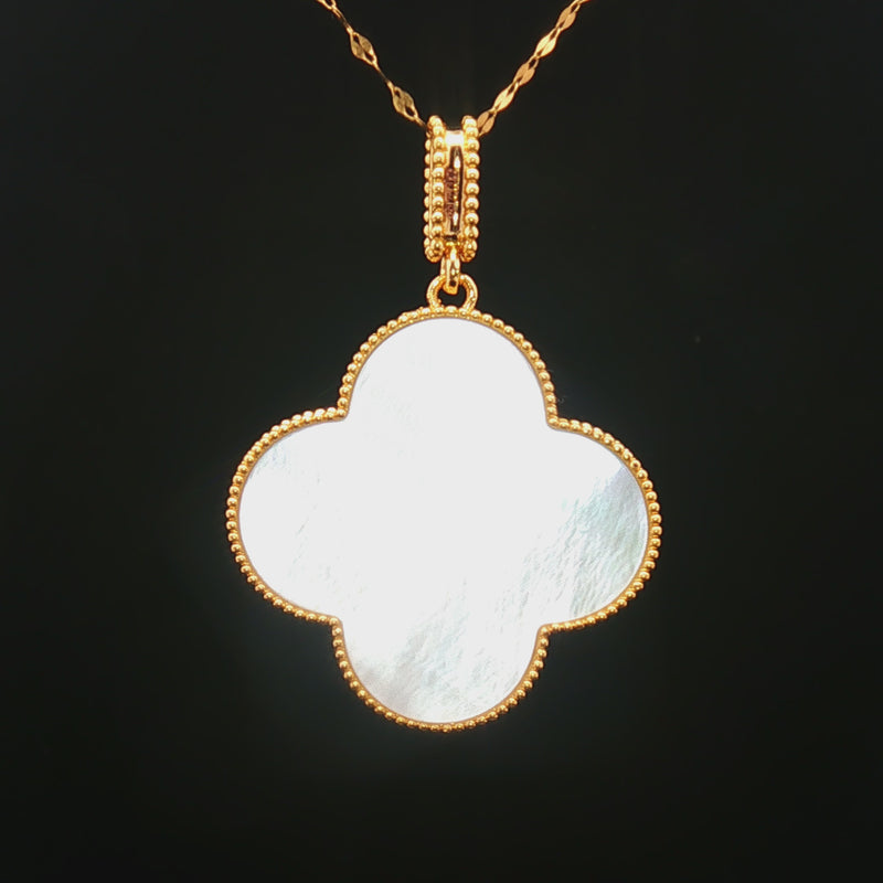 18k Yellow Gold Clover Pendant – 25mm Mother of Pearl Hollow Design