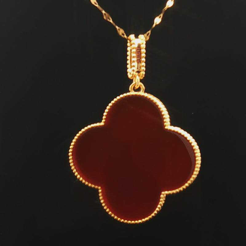 18k Yellow Gold Clover Pendant – 25mm Red Agate Hollow Charm (