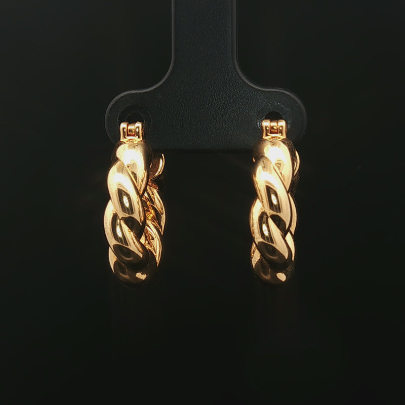 These braided hoop earrings deliver effortless elegance with a modern twist. The flowing intertwined design adds texture and dimension, making them an eye-catching accessory without overwhelming your look. Their lightweight build ensures comfort, while the rich yellow gold finish brings warmth and luxury.