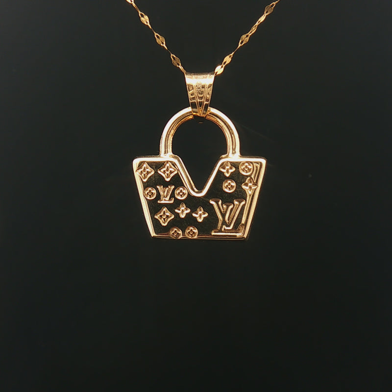 18k Yellow Gold Artistic Bag Pendant – Hollow Designer Charm