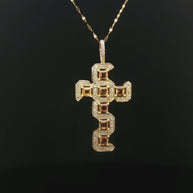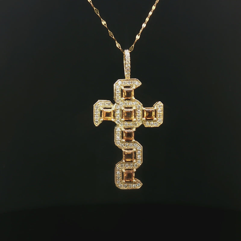 18k Yellow Gold Cross Pendant – 1.35ct Square-Cut Citrine & 0.40ct Natural Brilliant Diamonds