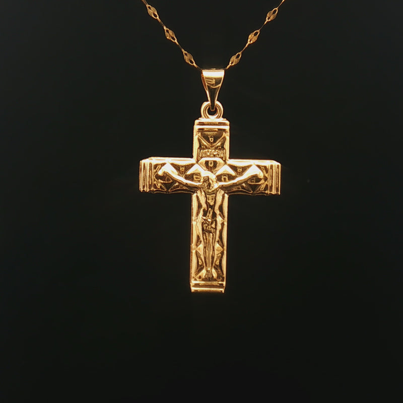 18k Yellow Gold Crucifix Pendant – Lightweight Hollow Detailed Cross