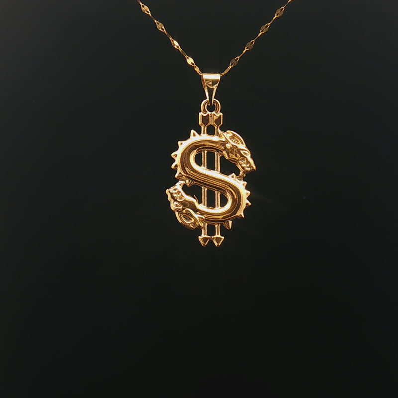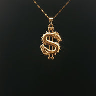 18k Yellow Gold Dragon Dollar Sign Pendant – Lightweight Statement Charm