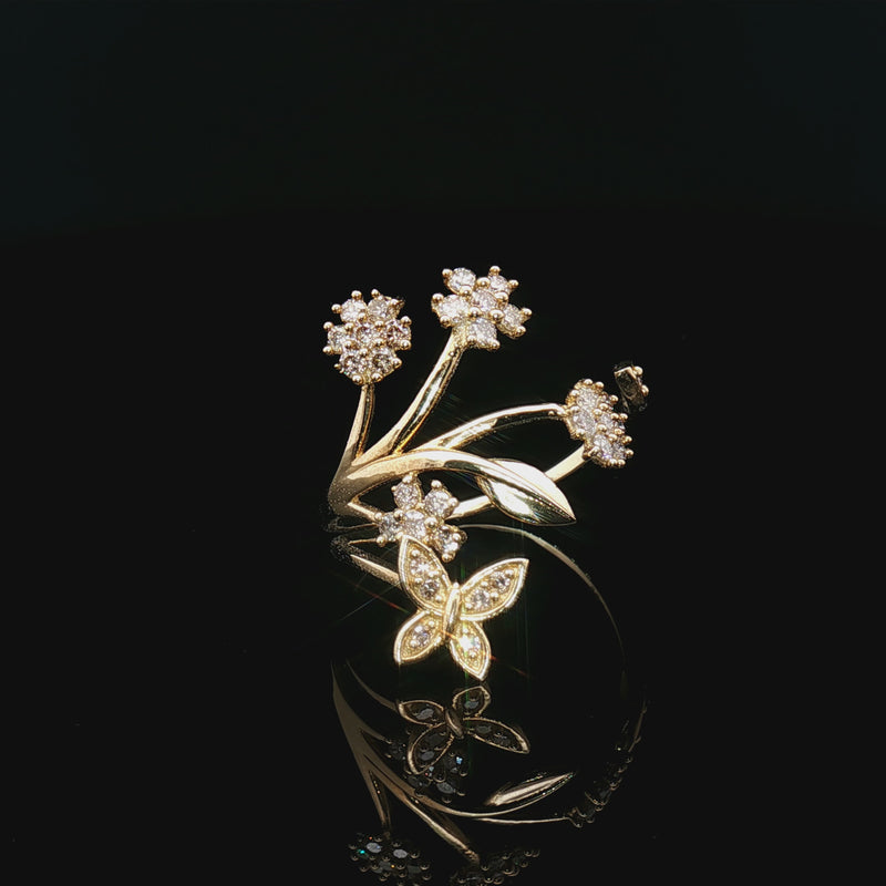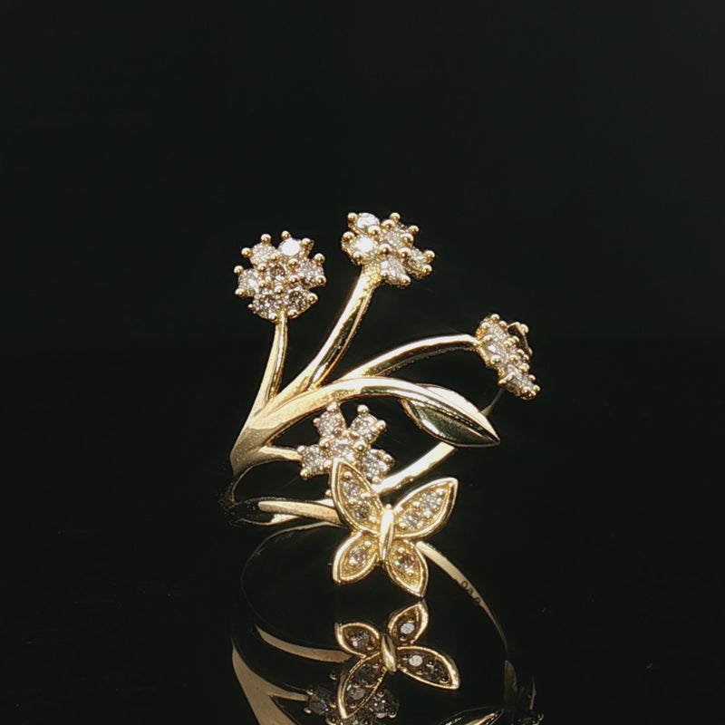 18k Yellow Gold Floral Butterfly Cocktail Ring – 0.50ct Natural Brilliant Diamond Design