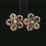 18k Yellow Gold Floral Stud Earrings – 4.40ct Multicolour Pear Gemstones & 0.40ct Natural Diamonds