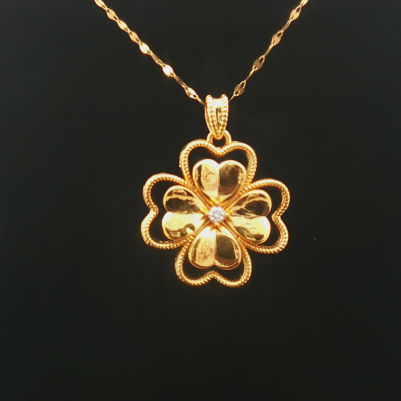 18k Yellow Gold Four-Leaf Clover Pendant – Lightweight Hollow Lucky Charm