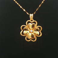 Bring a touch of charm and good fortune to your everyday style with this elegant 18k Yellow Gold Four-Leaf Clover Pendant. Beautifully crafted in lightweight, hollow 18k yellow gold, this enchanting charm showcases an intricately designed four-leaf clover—symbolising luck, positivity, and timeless beauty.