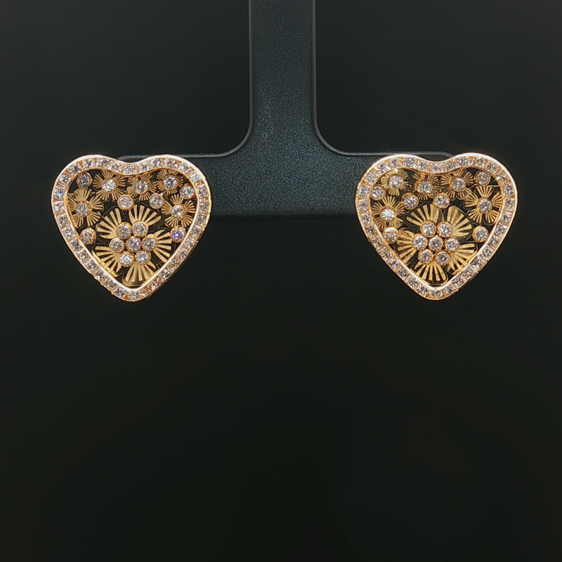 18k Yellow Gold Heart Floral Stud Earrings – Large Moissanite Cluster Design