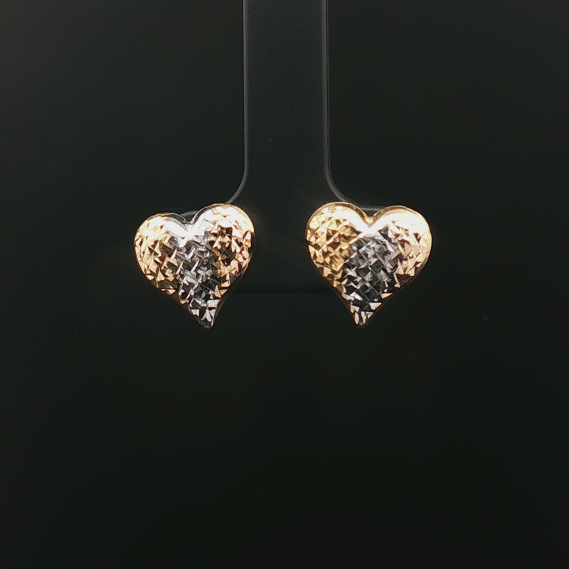 18k Yellow Gold Tri-Colour Heart Stud Earrings – Textured Yellow, Rose & White Gold Design