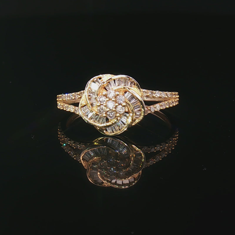 18k Yellow Gold Knot Flower Diamond Ring – 0.40ct Natural Round & Baguette Multi-Stone Design