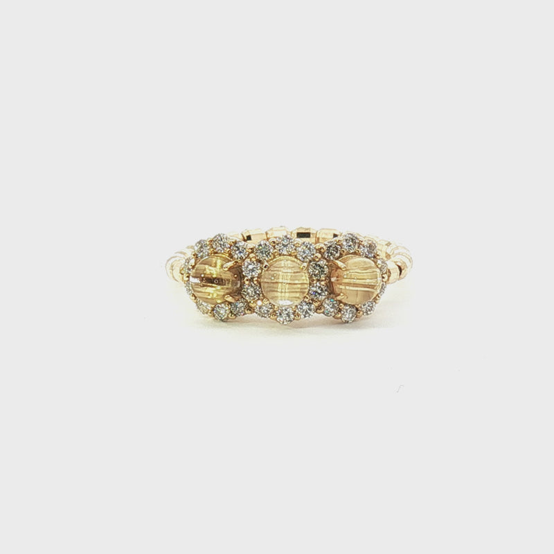 18k Yellow Gold Multi-Stone Ring – 0.60ct Rutilated Quartz & 0.30ct Natural Diamond Elastic Fit Band