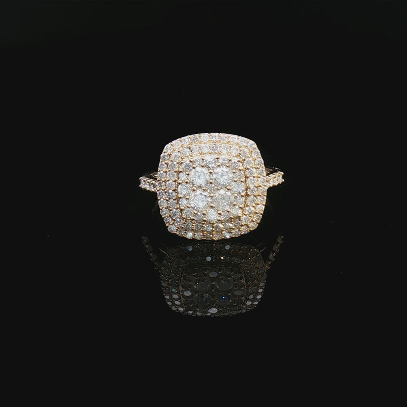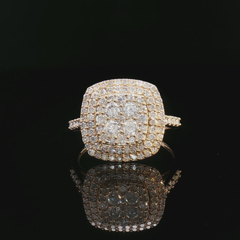 18k Yellow Gold Multi-Stone Ring – 1.00ct Cushion-Cut Illusion Natural Brilliant Diamond Cluster
