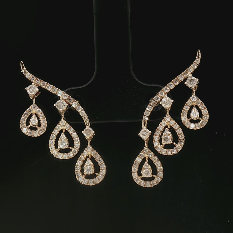 The warm glow of solid 18k yellow gold beautifully enhances the sparkle of the diamonds, offering a harmonious balance of luxury and luminosity. Designed to sway gracefully with every movement, these earrings make a captivating statement—perfect for special occasions, evening elegance, or elevating everyday style.
