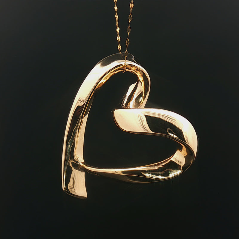 Celebrate timeless romance and refined elegance with this stunning 18k Yellow Gold Extra Large Open Heart Pendant, exquisitely crafted in a luxurious electroform design. The bold, oversized heart silhouette creates a captivating statement, while the high-polished 18k yellow gold finish radiates a warm, luminous glow that enhances any look.