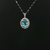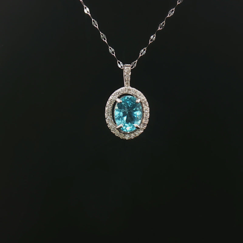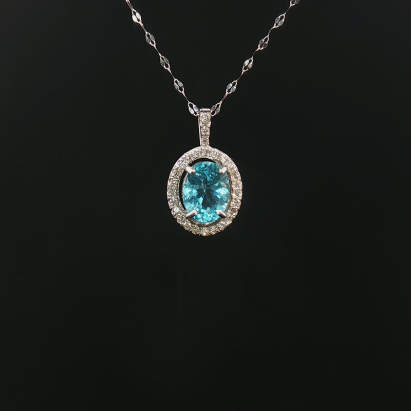 Platinum Pt900 Paraiba Apatite Pendant – 1.30ct Oval Paraiba with 0.15ct Natural Diamond Halo