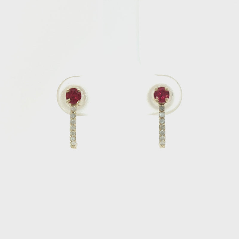18k Yellow Gold Half Loop Earrings with 0.30tcw Ruby and 0.08tcw Natural Diamonds