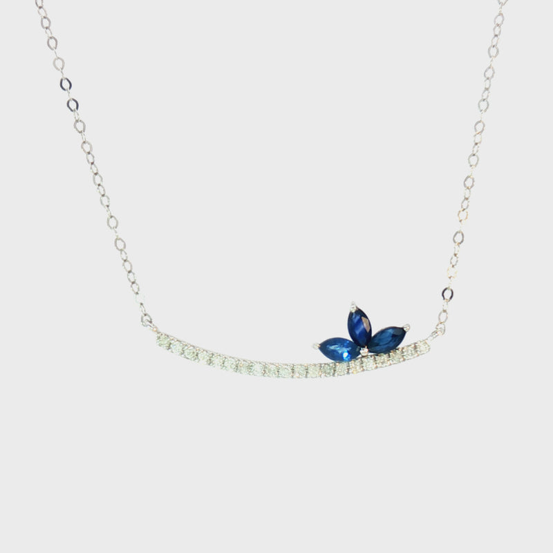 This sapphire and diamond necklace is a timeless symbol of sophistication, blending modern charm with classic luxury, perfect for any occasion.
