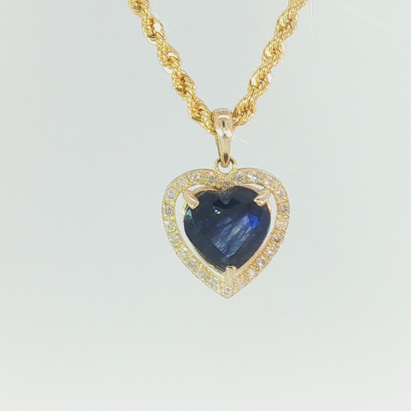 18k Yellow Gold Halo Heart Pendant with 2.50ct Blue Heart Sapphire and 0.12tcw Natural Diamonds