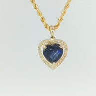 18k Yellow Gold Halo Heart Pendant with 2.50ct Blue Heart Sapphire and 0.12 tcw Natural Diamonds