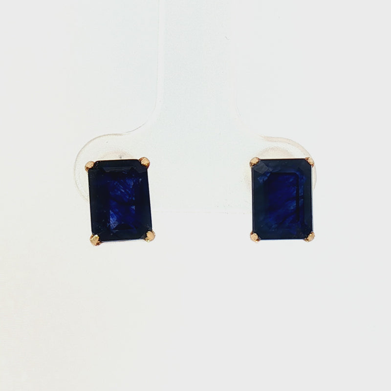 Elevate your elegance with these sophisticated 18k yellow gold stud earrings from Pacific Jewels. Crafted in solid radiant gold, each earring features a natural deep blue sapphire, emerald-cut with precision and a total combined weight of 4.60 carats. The step-cut facets highlight the sapphire’s mesmerizing depth and clarity, while its good polish and symmetry enhance light reflection for a captivating brilliance.